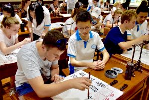 7月14日上午,我怀着无比激动的心情来到学校,踏上了意义非凡的接待之旅。其实早在暑假初至时,学校就早早地提供了比利时小伙伴的邮箱,我积极联系,还和他添加了微信。 我接待的小伙伴名叫QUINTEN,为了方便我姑且译作昆腾吧。由于对彼此的国家、城市和文化都不太了解,深深的好奇心使我们交谈甚欢, 各种问答你来我往、源源不断,长达五六百条的微信对话,既承载着我们对彼此的友好回应,也化为一座无形的桥梁让我们走近对方,期待见面的心情与日俱增。 14号上午——这难忘的一天终于来临,昆腾和其他比利时小伙伴们乘坐旅游大巴,驶进了我们美丽的校园。负责接待的同学们,一定是和我的心情一样快乐,纷纷招手示意,我双手举起精心设计的欢迎牌,很快就吸引到昆腾的注意,笑容像花一样在他脸上绽放,我们就像老朋友一样,就此欢快地交谈起来。 在接下来参观学校时,我愉快地给他介绍了47中的美丽景观和学习生活,昆腾也惊叹于我们学校规模之大、湖树之美。之后我和爸爸将昆腾接到家中,妈妈热情相迎, 两手沾满面粉——因为她正在准备昆腾念念不忘的“中国饺子”!在向昆腾简单介绍了中国传统饺子的配方和做法后,他兴奋地跃跃欲试。一切准备工作就绪, 我先给他做了个示范,顺便分解“动作要领”,昆腾迫不及待地“开工”了。刚开始包得非常艰难,但在制造了几个“怪胎”之后慢慢就掌握了要领,快了许多。 大家一定想知道昆腾吃饺子的感受吧?我只告诉大家,都晚上七点半了,我问昆腾,他还不想吃晚饭呢!呵呵。
