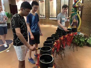 下午的安排,是帮助昆腾实现“梦想”——早在昆腾来中国之前,他就告诉我,比利时低层建筑多,高塔和摩天大厦很少,所以他非常希望去看看做攻略时发现的中原福塔。 恰巧,通过接待微群,我了解到12班何木和他的比利时小伙伴也准备去福塔,他爸爸还参与过福塔的建造,于是我们结伴而行。 在塔内,我向昆腾二人介绍了许多展出内容和不同寓意,例如“寿”、“福”等字的内涵、十二生肖的民俗、中原的城市及特点等等, 从两位比利时小伙伴连珠炮似的问题和兴致勃勃的脸上,我和何木也愉快地判定他们一定不虚此行。