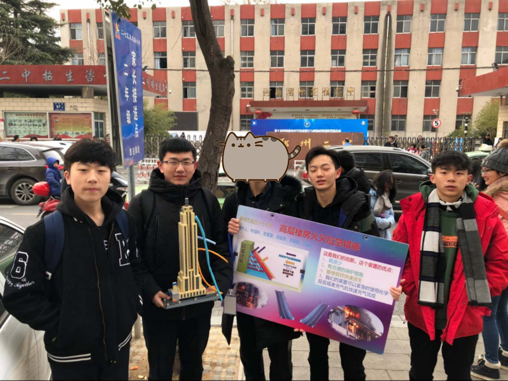 第二次参加创新大赛是高二上学期。队员有贺奎源、田益多、李荣桓、范毅森当然还有我。杨习海交代老范他们任务,最后我也加入了(积极主动)。我们刚开始探讨做什么样的课题,最后想出了火灾楼房逃生问题。我制作了PPT和宣传海报。