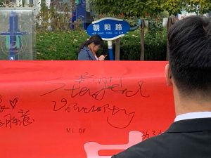签字完成以后我们跑去主席台照合影留念。