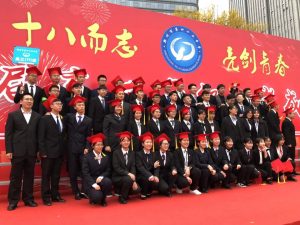 一到学校,就差不多和同学们打打招呼,问问好。那时候是穿西服,甚至有同学白衬衣就是最内层衣服。当时正逢变天,仪式开始后我们就在操场中央的凳子上就坐,任凭寒风侵蚀。叶校长讲完话以后,我们就去篮球场那的红布 上签上自己的梦想。我当然是签的"Stanford University"和我的繁体签名。