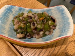 出来后,和海峣坐公交车去熙地港附近的一家日料店吃饭。我们说说笑笑,十分快乐。那家日料店装修精致,菜样精美。大快朵颐后,和海峣去Cityon的MINISO转了一圈,我还在那买了一个柴犬毛绒玩具。