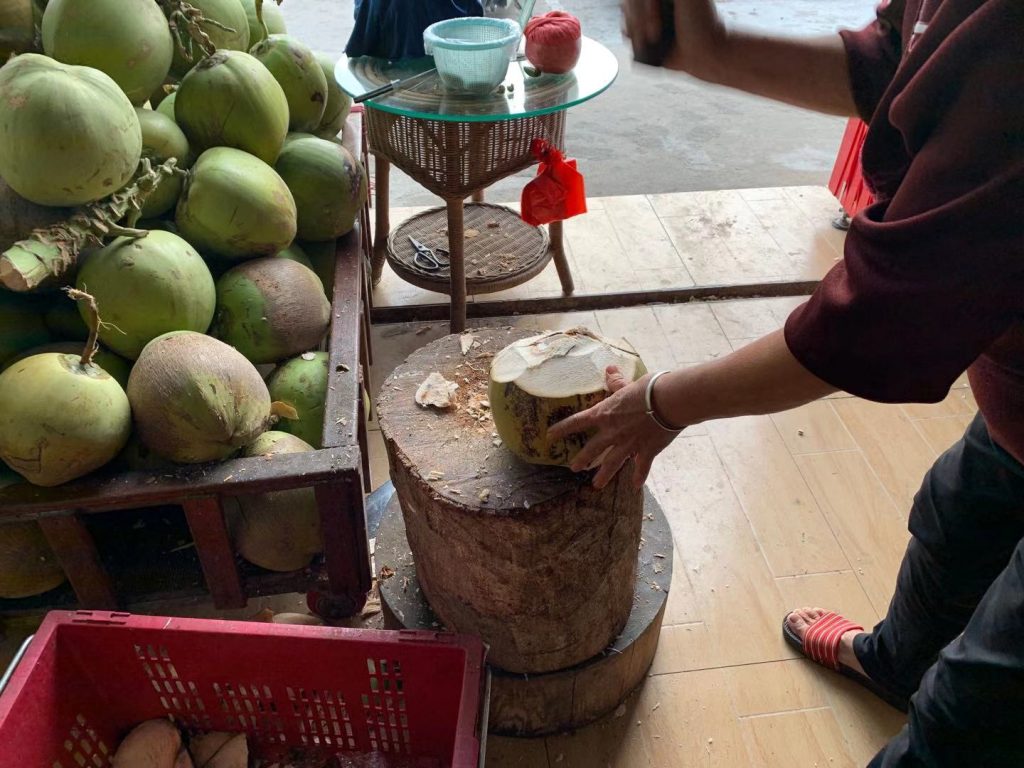 海南的椰子又新鲜又便宜,快到宾馆时,遇上了一个椰子店。我畅爽地喝了一个椰子的果汁,暑气渐渐消散。